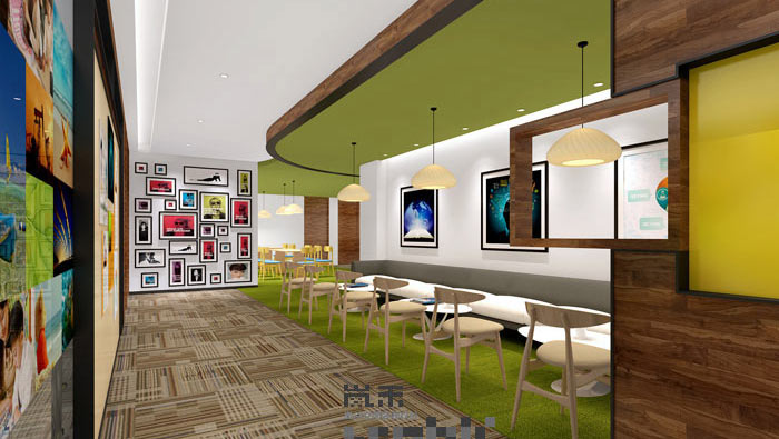接待區域的設計:設計師在設計的時候,將其打造成一個寧靜、愜意的空間,在設計師看來這樣的空間設計,可以拉近與學生家長之間的關系,以此促進進一步的交流與了解,設計師希望通過這樣的設計,為下一步的合作打造一個具有交流屬性的空間。