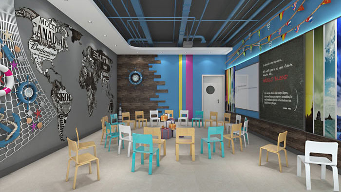 教學區域的設計:設計師在設計的時候,將其設置成一個圓形,摒棄了傳統的設計手法,在設計師看來這樣的設計,更利于教師關注到每一個孩子,同時孩子與孩子之間緊靠在一起,也能在無形中產生安全感,讓孩子的心中徹底放松,以求盡快的融入其中。