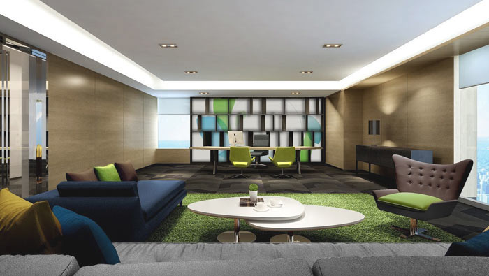 進門區域的設計:設計師在設計的時候,認為前臺的設計只會在一定程度上壓制空間的最大化使用,故此設計師在深思熟慮之后,選擇舍棄前臺以單刀直入的方式進行設計,讓客戶可以在進入空間之后,在一瞬間就可以對企業有所了解,起到品牌的最大化。