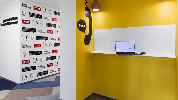 本次為IT培訓學校辦公室裝修設計效果圖,設計師在IT培訓學校設計中,以溫馨、愉悅為學校設計理念,目的就是避免出現枯燥的學習環境,設計師希望在環境中創造適合學習的空間氛圍。