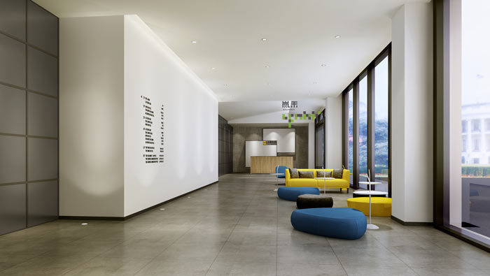 科技公司辦公室一樓大廳設計:設計師在一樓大廳原有格局的基礎之上做了細微的調整,一點小小的改變展示了企業的待客之道,空間得以利用,同時也打造出溫馨的空間氛圍。