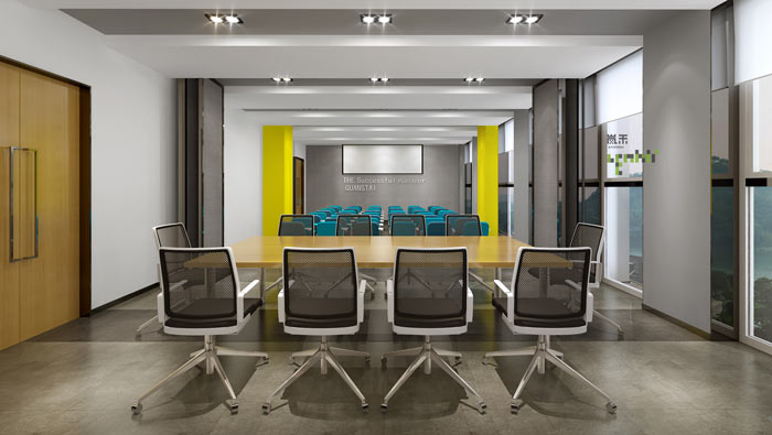 科技公司辦公室培訓室設計:企業想要得到長足的發展,對員工的培養與教育分不開,此處是企業培訓員工的場所,在這里承載著企業的未來。