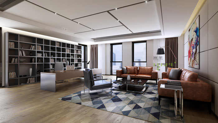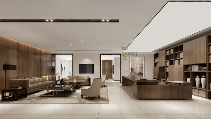 科技公司總經理辦公室設計:總經理做為企業的執行者與監督者,辦公室設計一定要有自己的特色,故此設計師在簡潔設計的同時,也將自己的心得融入其中,期望總經理在這里可以有所收獲。