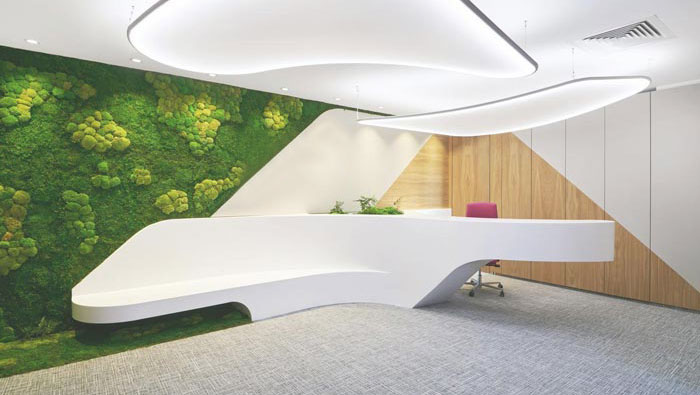 科技公司辦公室前臺設計:設計師在設計的時候,對空間采用了極大的留白性,設計師以企業品牌與企業文化為主題,設計師希望為企業帶來與眾不同,又兼具實用的雙重空間。