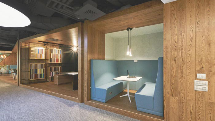科技公司辦公室休息區設計:設計師在設計的時候,更多強調的是對于自然的開發,在設計師看來自然擁有無以倫比的自愈能力,故此設計師希望讓員工可以融入自然,在休息的同時,不斷的修復員工那勞累的心神。