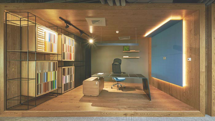 科技公司總經理辦公室設計:設計師在設計的時候,設計師將其安置在開放又獨立的空間之中,這樣一方面可以為總經理提供一個獨立的空間,同時又可以與員工在一起,激發員工的斗志。