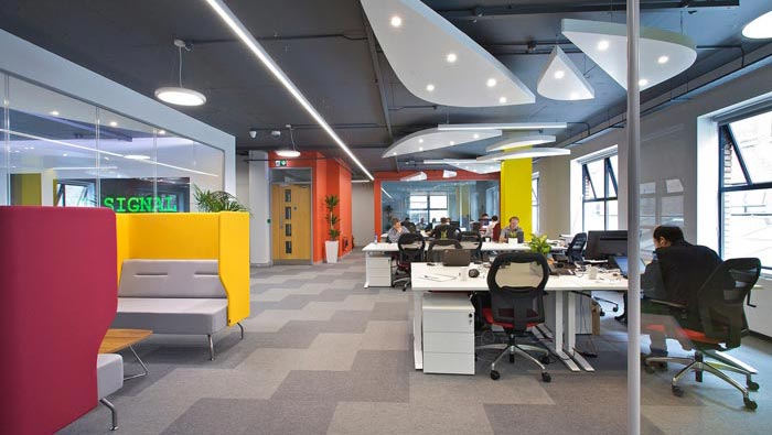 科技公司辦公室辦公區(qū)設(shè)計:設(shè)計師在設(shè)計的時候,將辦公工位按照空間的順序進(jìn)行豎向排列,以此既滿足企業(yè)對于工位數(shù)量的要求,同時也盡量的將空間拉開避免出現(xiàn)空間的過渡密集,開放式的設(shè)計讓員工在工作中有了更多的交流,彼此之間的相互交流有助于增加企業(yè)內(nèi)部的向心力。