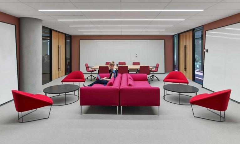 即使你走在大街上,大廳也邀請你進來探索,用巨大的鏡子打破內(nèi)外的界限。這樣做,它們反映了公司的核心價值之一:無限的存儲深度和可能性。還可以看看大廳里懸掛的巨大的地面苔蘚球,這表明這是一個不斷發(fā)展的空間--在你可以弄臟雙手的地方。不僅僅是你可以在任何地方工作。你已經(jīng)可以看到自己在里面了。