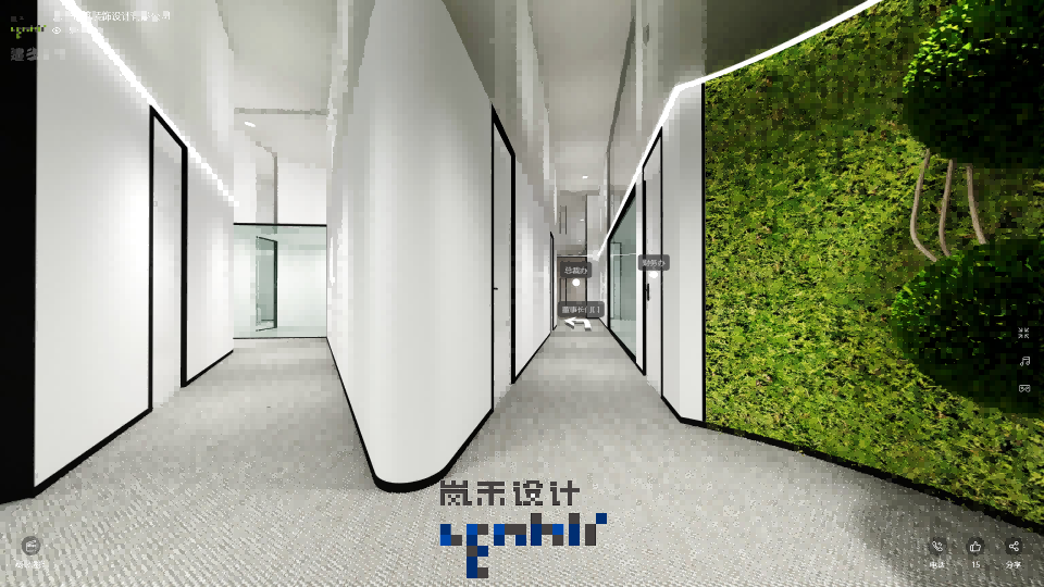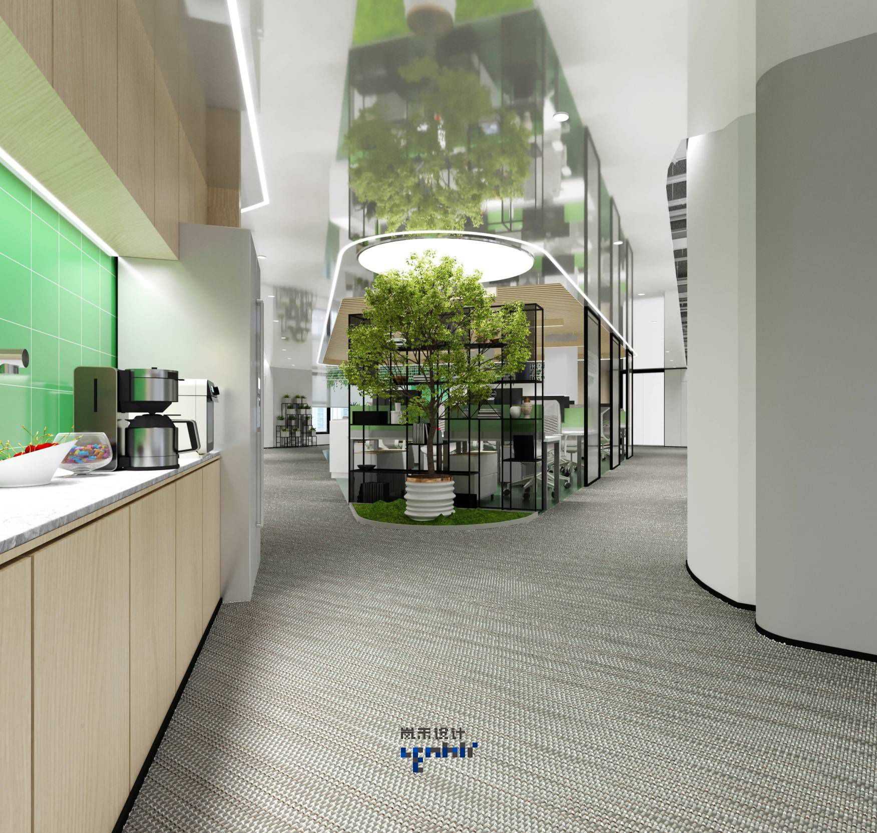 同樣是以綠色環(huán)保為主的設(shè)計(jì),在過(guò)道中也能展現(xiàn)出來(lái),墻壁上的春意瑩然搭配上極具科技感的燈帶,一直保持的主題從未偏離過(guò),綠色環(huán)保加上現(xiàn)代科技的感覺充斥者公司的每個(gè)角落。