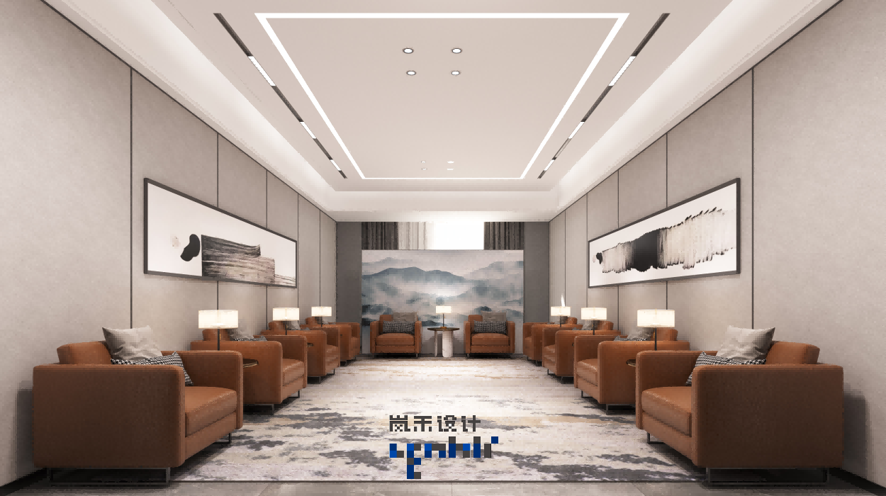 日常使用的接待室往往需要具備分流的作用,列如今天有人來(lái)應(yīng)聘,需要分流到小會(huì)議室,有人遞交材料等,而大型接待室往往面對(duì)的是貴賓,使用頻率不高但是從設(shè)計(jì)上來(lái)說(shuō)必須具備一定的觀賞性和主人的自己風(fēng)格,水墨潑畫的意境卻不乏威嚴(yán)的震懾,正正方方的格局與辦公環(huán)境的個(gè)格調(diào)完全不同,猶如鬧市里的寺廟,權(quán)利、穩(wěn)重、決絕。