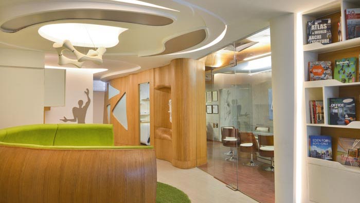 接待區(qū)域的設(shè)計(jì):設(shè)計(jì)師在設(shè)計(jì)的時(shí)候,將其安置在前臺(tái)區(qū)域的后方,在形狀的選擇上,設(shè)計(jì)師選用了半圓形,在設(shè)計(jì)師看來這樣的設(shè)計(jì)有其天然的優(yōu)越性,半圓形在此處瞬間感覺空間突然上升了一個(gè)層次,同時(shí)又不會(huì)對(duì)整體空間造成影響,做到實(shí)用與形象并存。