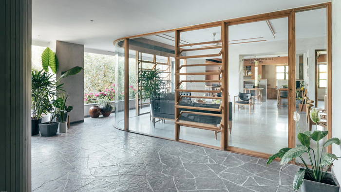 本次為律師事務(wù)所裝修設(shè)計效果圖,整個辦公空間大面積的開窗,保證了辦公室優(yōu)質(zhì)的景觀視野,同時也提供了良好的通風(fēng)和采光,將外部景觀吸納進(jìn)來,保持室內(nèi)外的互動交流。