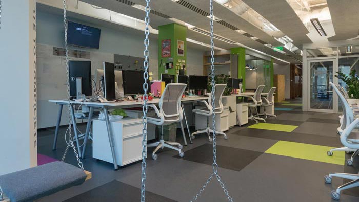 旅游門戶辦公室辦公區設計:設計師在設計的時候,采用開放式的設計手法對空間進行設計,設計師將各個部門以動線將其進行分離,這樣的好處就是在分離的同時,可以實現各個空間的連接暢通無阻。