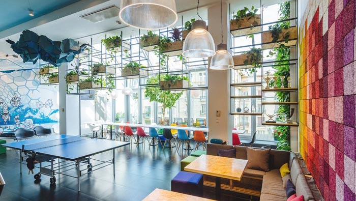 旅游門戶辦公室交流區設計:設計師在設計的時候,重點在于打造一個零距離的私人交流空間,在設計師看來任何事情只有深入了解客戶之后,才能制定出符合其自身的項目,做到一舉兩得,實現業務的人性化。