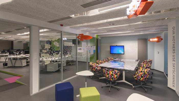 旅游門戶辦公室培訓區設計:此處的培訓區域不只是針對企業內部,同時也是針對客戶旅行前的培訓,設計師在設計的時候,重點考慮的問題就是,如何在有限的空間之中,將容納擴大化。