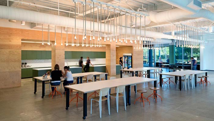 APP公司辦公室休息區(qū)設計:設計師在設計的時候,將其設置在巨大的大廳中,這樣更方便屬性的相互轉變,在設計師看來此處是客戶與員工聚合的場所,在此處對于員工來說是一個放松身心的區(qū)域。