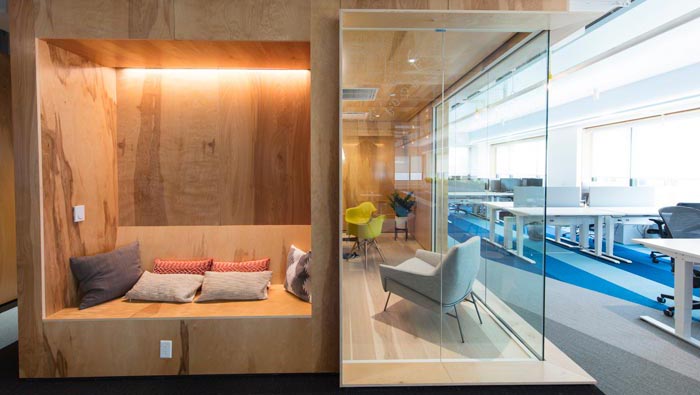 網絡公司辦公室茶水間設計:設計師在設計的時候,將其與休息區域相融合在一起,設計師希望員工可以在此處休息、交流、玩耍,光源透過透明隔斷射入室內空間,暖洋洋的氣氛充斥整個空間。