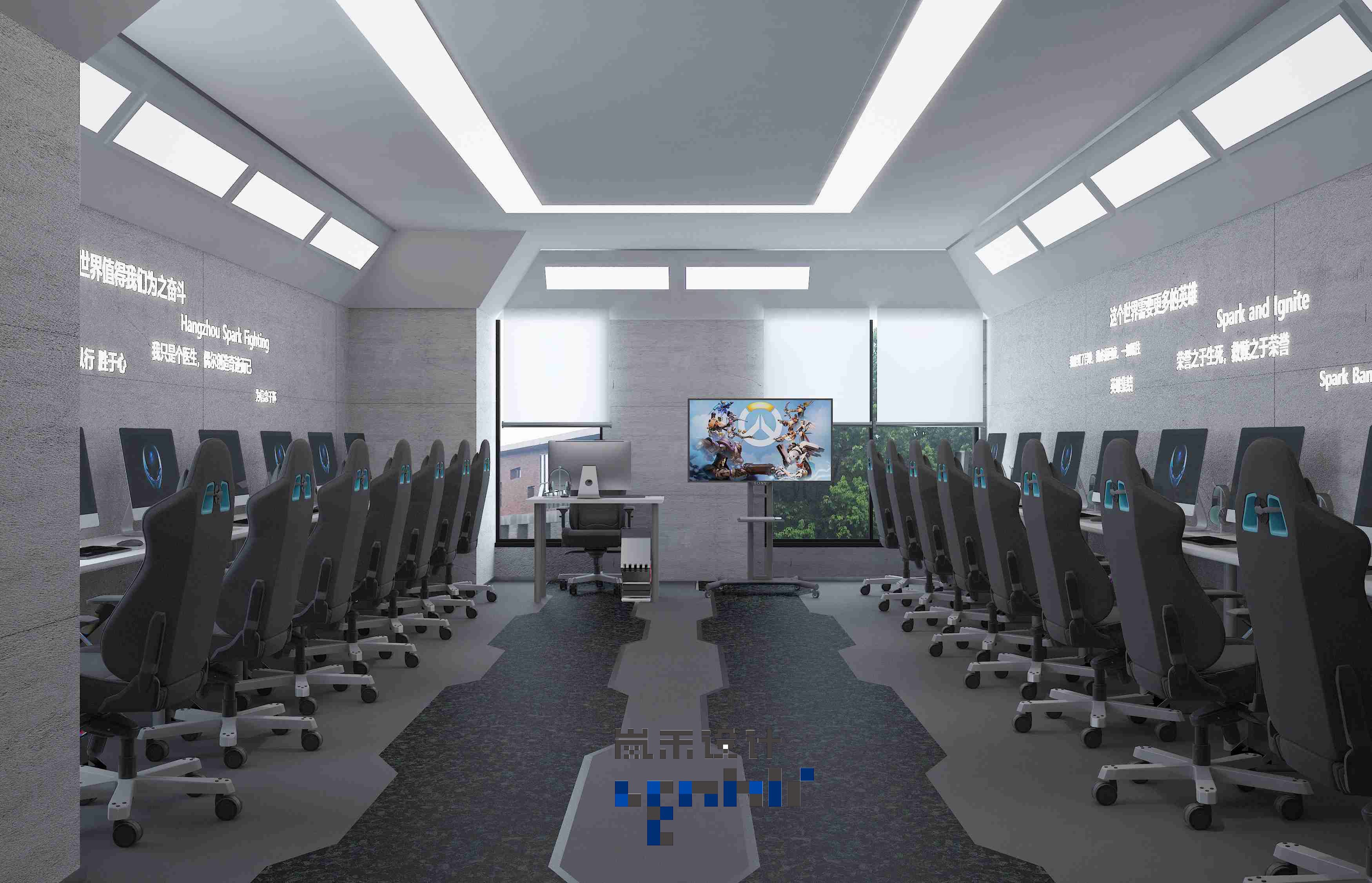 Heros never die,背景圖選用了OW也就是守望先鋒的一些臺詞和畫面。很多人的青春都在那個2016年夏天綻放開來,那是一段美好的回憶,就如同那句永遠年輕,永遠熱淚盈眶,當然該空間設(shè)計的非常現(xiàn)代而又具有科技未來感,黑白色奠定了基礎(chǔ),希望游玩者們能沉穩(wěn)些吧。