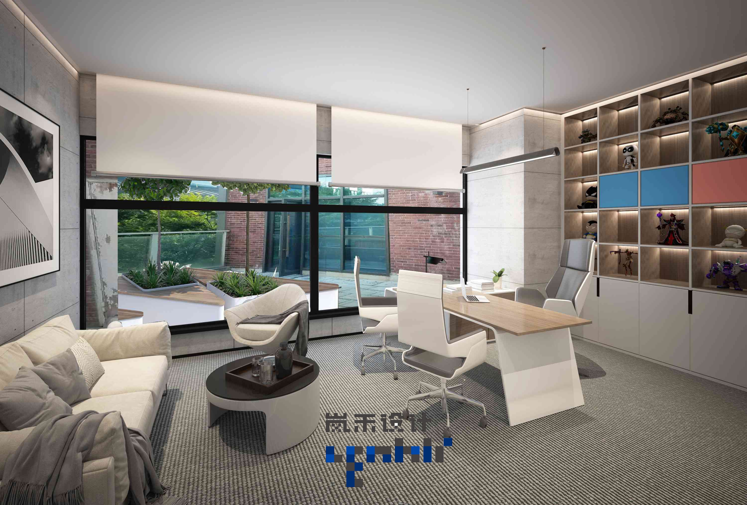 CEO辦公室總體來說以莊重素雅為主題,相比外面的科技感的設(shè)計這里留下的更多的讓人思考的空間。氣氛不會過于跳脫也不會太沉重,在現(xiàn)代與品質(zhì)中尋找平衡。
