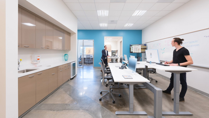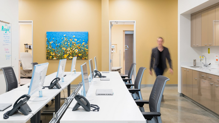 本次為健康療養中心辦公室裝修設計項目,設計面積在650平方左右,此處是位于加利福尼亞州山景城的新的健康設施,設計師在設計的時候,重點在于考慮如何設計出一種,符合下一代新型醫療所配套的辦公設計,這也是設計師此處設計師首要要面對的事情,旨在激發新一代努力工作,更好地生活。