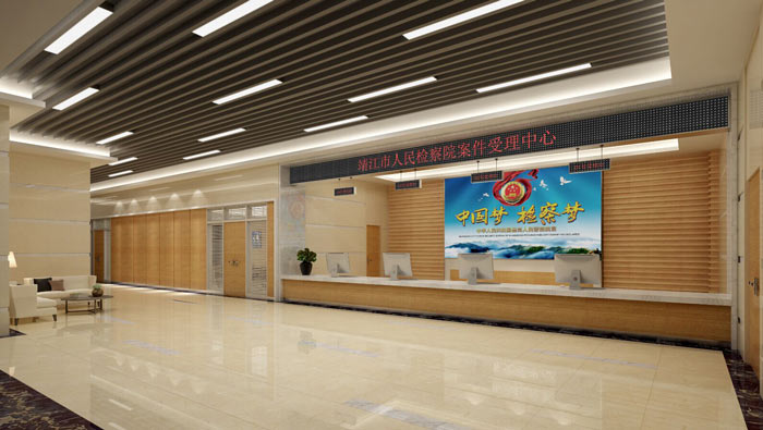 政府機(jī)關(guān)辦公樓門(mén)廳裝修:門(mén)廳是人流最為頻繁的地方,故此設(shè)計(jì)師采用優(yōu)雅、穩(wěn)重的爵士白石材,穿插在米黃色調(diào)的環(huán)境中,使整個(gè)環(huán)境更加穩(wěn)重、親民。
