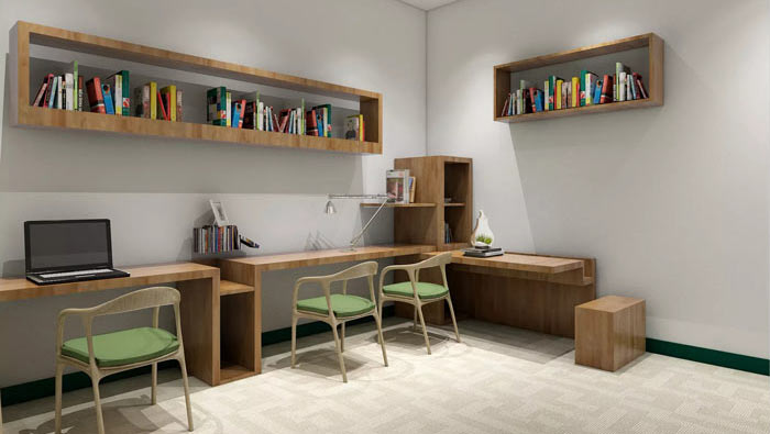 國家電網辦公室休息區裝修:空間有書、有花、有綠植、有座椅、有景色,小空間在設計師的手法之下,化腐朽為神奇,設計師希望將所有空間都合理的加以運用。