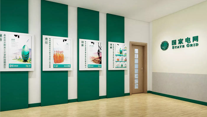 國家電網辦公室形象墻裝修:科技創新、超越自我是企業一直堅持的理念,電網無處不在,表示著企業的宏偉藍圖,電網上的工作人員,表示著企業的腳踏實地。
