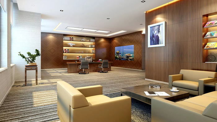 銀行行長辦公室裝修:空間由辦公區、接待區、洽談區構成,在滿足基本需求之外,設計師也為客戶預留了足夠的活動空間,設計師希望既滿足需求,同時保證空間的舒適度。