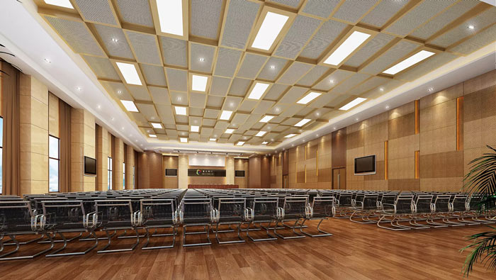 銀行寫字樓多功能廳裝修:空間可以容納100-200人,這里完全可以容納下銀行的所有人,這也是建立多功能會議室的初衷,多功能會議室的存在就是為了滿足企業的需求。