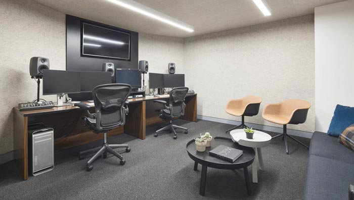 辦公區的設計:此處主要保證的是安靜,因為廣告因為的是創意,靈感可以來自任何場所、任何環境,但是當靈感來臨之后,我們要做的就是記錄下來,或者是在一個安靜的空間之中進行沉思,此處主要就是為了滿足靜這個需求,讓策劃人員可以在安靜的空間之中完成自己的創意與想法。