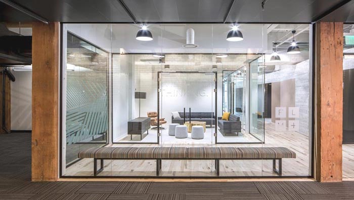800平方辦公室動線設計:此處給人的第一感覺就是十分明朗,當客戶想要直接參觀企業(yè)的時候,向右轉(zhuǎn)可以直接進入室內(nèi),接待區(qū)域本身就是一個過渡空間,這樣的布局就是將兩種情況都加以考慮,并再設計的時候加以結(jié)合,在客戶前面想到并解決這個問題,以此保證整個空間的暢通。