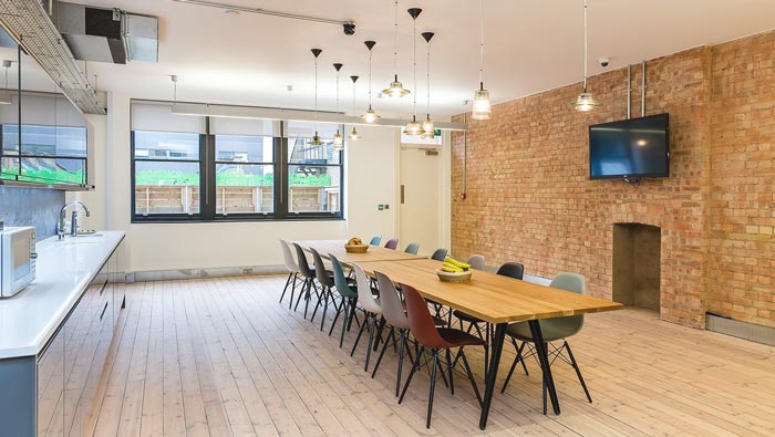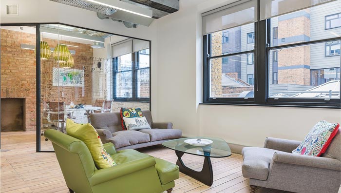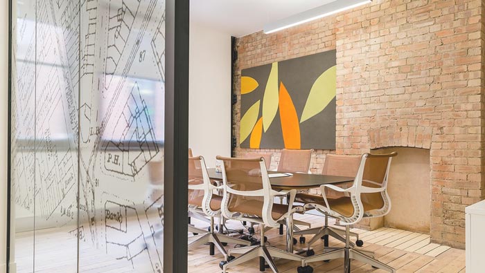 900平方辦公室會議室設計:此處給人的第一感覺就是紅磚墻,這樣的磚墻現在已經不多見了,但是對于大部分人來說這是我們那一代代的記憶,在無形中拉近了彼此的關系,給人一種回歸自然、返樸歸真的感覺,同時也與整個空間相契合。