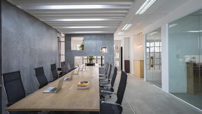 辦公室會(huì)議區(qū)設(shè)計(jì):加長(zhǎng)版的會(huì)議桌擺放在空間之中,一個(gè)大區(qū)域就此落地,既不妨礙整個(gè)空間的運(yùn)行,也可以滿足企業(yè)需求,同時(shí)還可以滿足員工在此處辦公,一舉三得、何樂(lè)而不為。