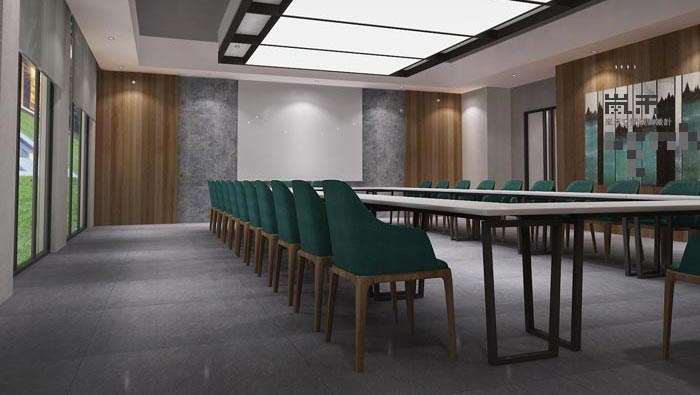 此處會(huì)議室設(shè)計(jì)有所不同,因?yàn)槠涞刂吩谪?fù)一層,設(shè)計(jì)師除了要保證本身的功能與格局外,還需要特別注意燈光的布置,設(shè)計(jì)師的目標(biāo)就是布置的簡(jiǎn)單大氣且?guī)в猩虡I(yè)氣息。