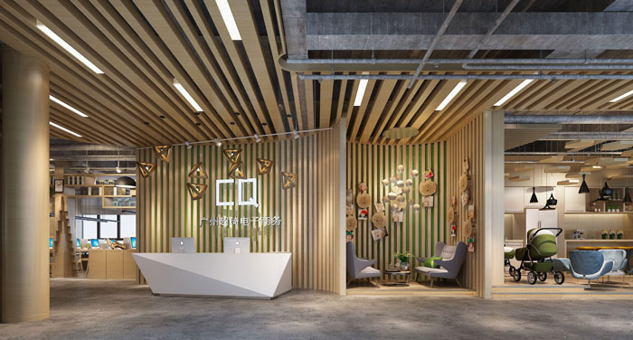 在辦公區域設計的時候,設計師采用了由淺至深的顏色分布,表現企業的陽光積極,這也能表現電子商務行業公司辦公室裝修的時尚元素。