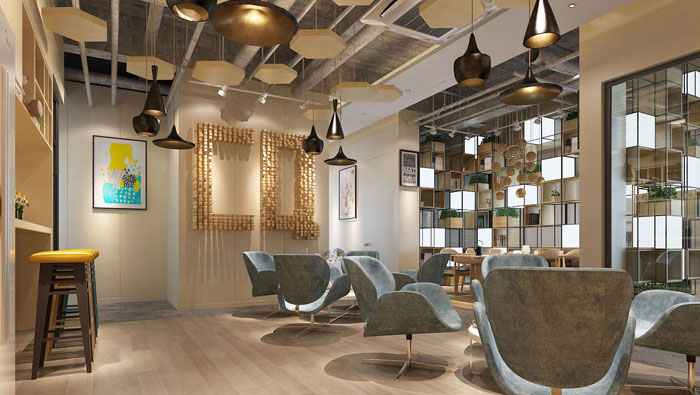 會議區辦公室的設計,設計師將光效弄得特別亮,很有潮氣活力,很有層次感,有由淺至深地了解一個品牌的寓意。