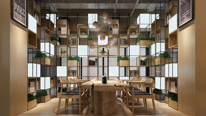 洽談區域的設計,設計師特意設計成綠意空間,設計師認為人們往往遠離大自然,因此需要在空間中多增添一些綠色,雖然面積有限,但能給交談提供一個很好的洽談環境。