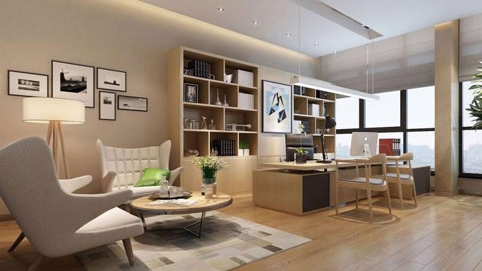 總經理辦公室的設計,設計師主要采用軟裝的相互搭配對空間進行設計,光源的設計也是設計師設計的一大方面,軟裝和光源構成了一個完整且舒適的總經理辦公室。