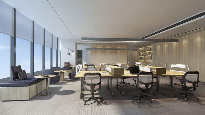 辦公區域的設計,因為時間節點都是朝九晚五,所以設計師更加注重光源的設計,在采光的同時加入了暖色系,給員工以溫暖。