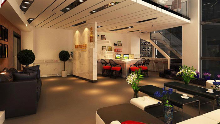 一樓空間設計包括:形象墻、茶水間、接待區域、辦公區域,在小空間中劃分出如此多的區域,對于設計師來說也有一定的難度,最后設計師采用將硬裝與軟裝相結合的方式,合理的劃分出各個功能區域。
