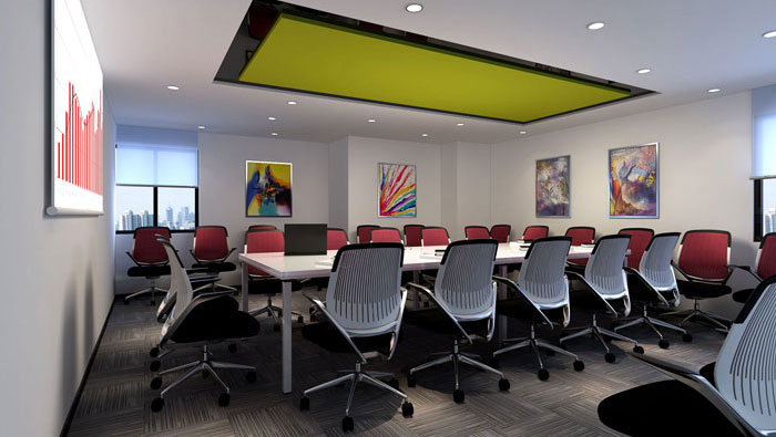 會(huì)議室的設(shè)計(jì),設(shè)計(jì)師看來(lái)主要就是調(diào)動(dòng)員工區(qū)域積極的思考,在設(shè)計(jì)的時(shí)候設(shè)計(jì)師采用色彩之間的變化,為企業(yè)提供了很好的思考與討論空間。
