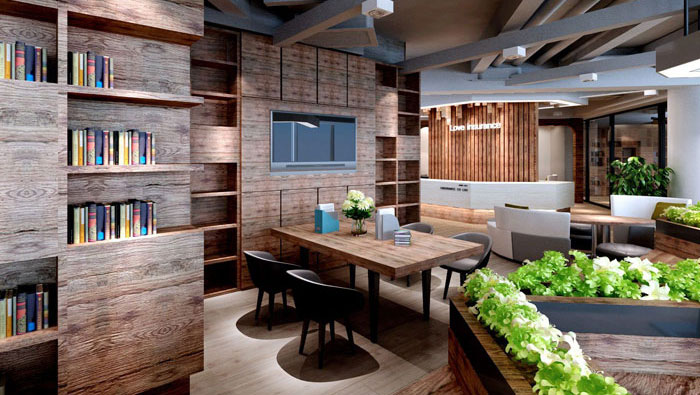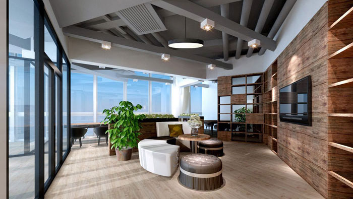 前臺過渡區域的設計,設計師以無邊界為主題對空間進行設計,意在打造一個休閑、溫馨的辦公交流空間。