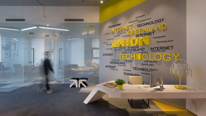 前臺的設計,設計師在設計的時候將形象墻與前臺融為一體,兩者相互融合、相互搭配,在進門區域給客戶留下良好的企業形象,為下一步的溝通打造堅實的基礎。