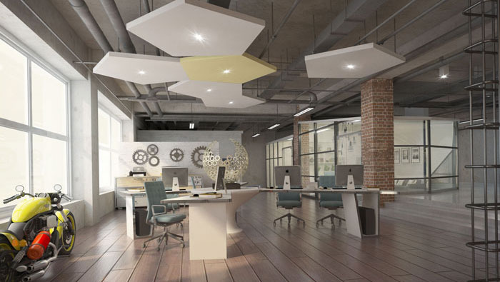 850平方廠房辦公區域:設計師在設計的時候,采用空間的層疊式對空間進行設計,在設計師看來小空間,可以在其他空間的輔助上進行有效的視覺延伸,故此設計師在設計的時候從上、從四周來拓展空間的視覺面積。