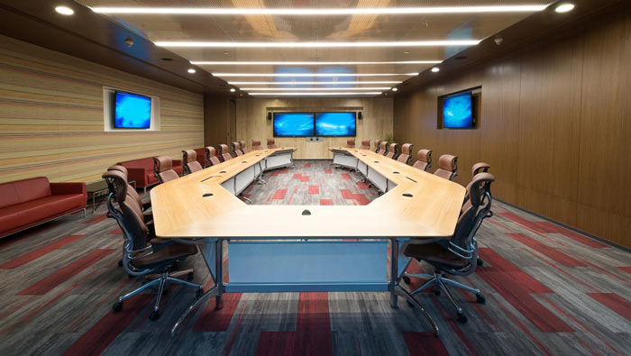 會議室設計方案:異性的會議桌是為了擺脫傳統四四四方的設計,這樣做的目的就是為了沖破桎梏,讓企業越走越遠,沖破桎梏是為了讓企業不拘泥與現在,而是要著眼于未來。