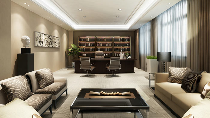 總經(jīng)理辦公室設(shè)計(jì):設(shè)計(jì)師將辦公區(qū)域安置在空間的內(nèi)側(cè),目的就是希望總經(jīng)理在辦公的時(shí)候不被打擾,接待區(qū)、休息區(qū)安置在外側(cè),目的就是希望辦公與接待各行其道。