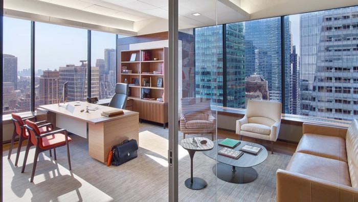 老總辦公室設計:此處給人的第一感覺就是大氣,此大氣不是空間給人的感覺,而是設計師借用室外給大家的一種視覺沖擊,明亮的空間加上柔和的陽光,讓辦公成為一中心享受。