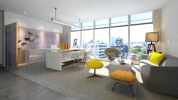 老總辦公室設計:此處給人的第一感覺就是明亮,因為有了光,這里的色彩十分亮麗,當工作勞累的時候,可以俯視一個城市的景色,讓勞累的心可以得到暫時的緩解。