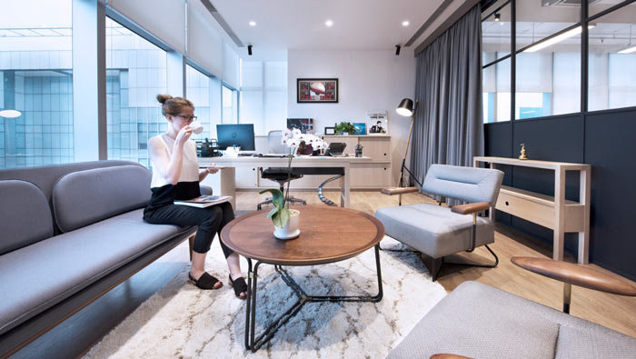 女老板辦公室設(shè)計(jì):女老板在重視辦公需求的同時(shí),也十分重視的生活品味,故此女老板辦公室的設(shè)計(jì)會(huì)更加的細(xì)膩,上圖我們看到女老板邊品茶邊看書,生活十分愜意。